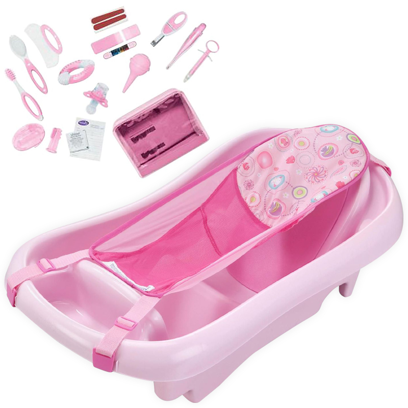 Deluxe Baby Bath Tub With Sling Health Kit Bundle Pink