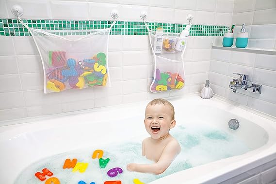 Comfylife 2 X Mesh Bath Toy Organizer 6 Ultra Strong Hooks 36 Bath Letters Numbers Eco Safe Fun Educational Foam Baby Bath Letters And