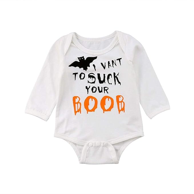 Inhoney Halloween Romper Bat Baby Onesie Baby Girl Boy Letter Printed Bodysuit Long Sleeve Costume
