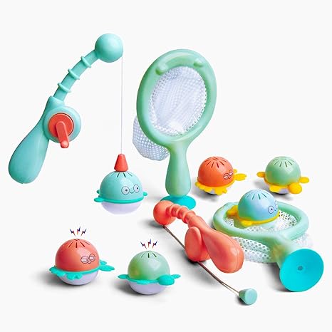 Gizmovine Bath Toys Fishing Floating Squirts Toddler Toys And Fish Rod Kids Toys Fish Net Game In Bathtub Bathroom Pool Bath Time Baby Bath Toys For